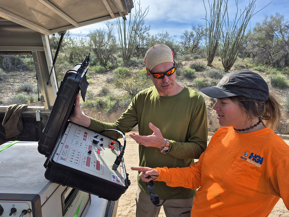 In February 2026, AV Geophysics assisted with commissioning a CSAMT field campaign just south of the former Route 66 in Arizona. It was a short getaway from still snowy Canada into a completely different setting — surrounded by dry terrain and cactuses.